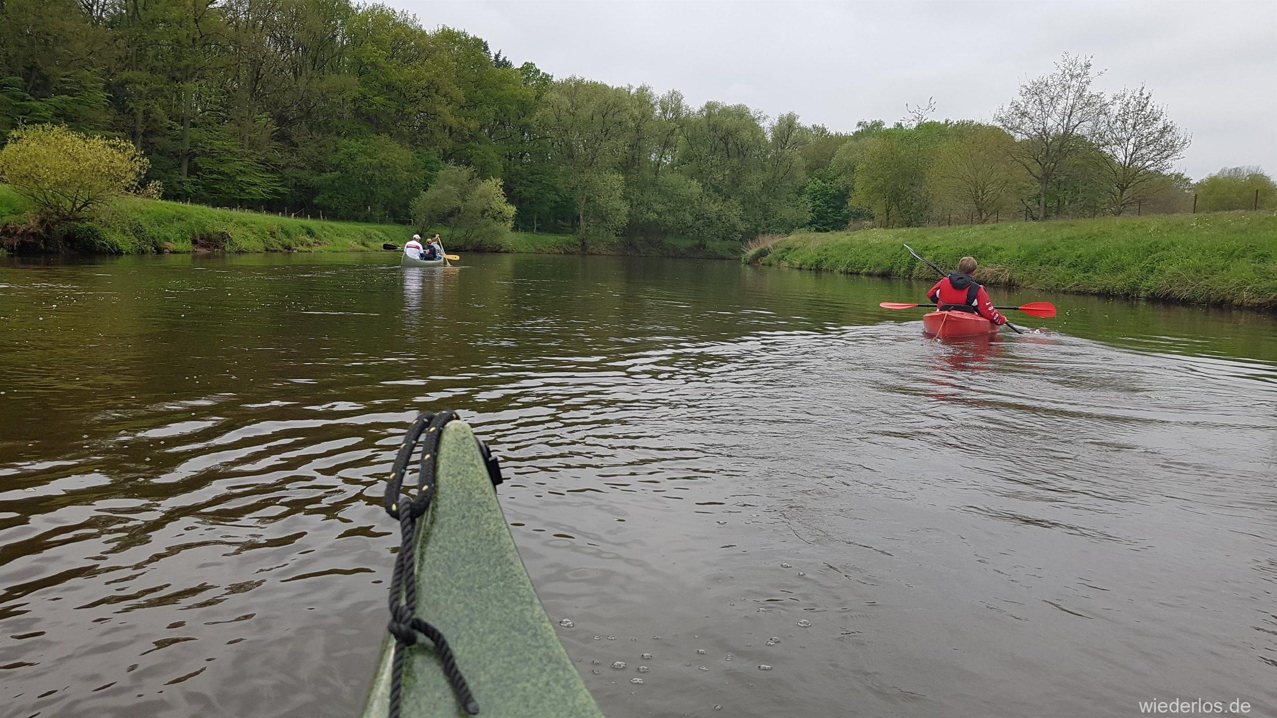 Der zweite Tag wird durch die rote Linie mit ca. 11 km beschrieben. Am zweiten Tag haben wir die Fahrräder auf die Autos geladen und haben dann die Fahrzeuge am Ziel abgestellt und sind mit den Rädern zurück zum Campingplatz gefahren. Das hat jeweils ca. 40 Minuten gedauert und ist auch als Fahrradtour schon ein Highlight. Aber auch der Fluss ist sehr reizvoll: