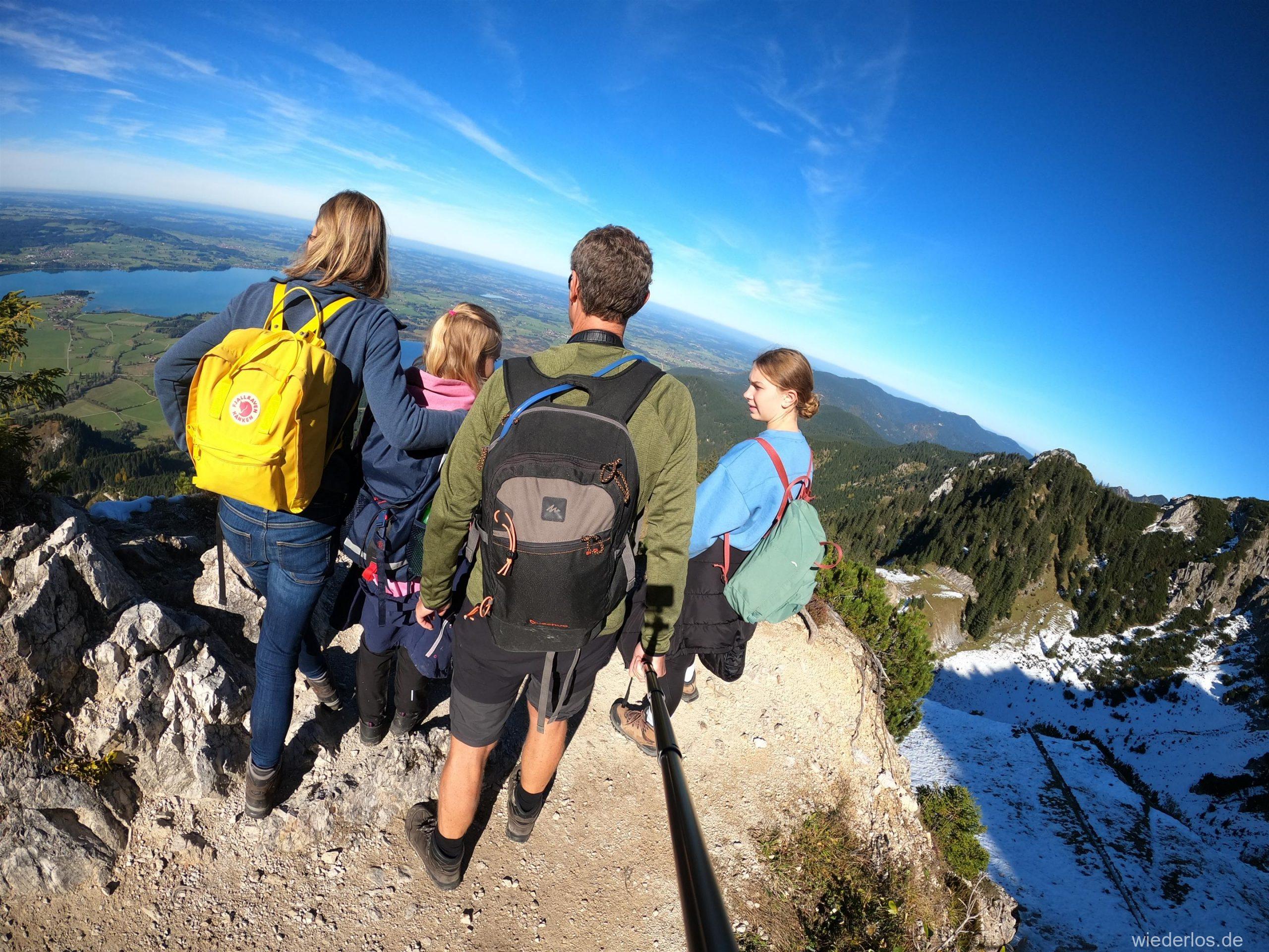 Von dort sind wir bis zur Rohrkopfhütte aufgestiegen. Hier muss man eine Pause einlegen, auch wenn man eigentlich noch keinen großen Hunger hat. Alles was hier auf den Tisch kommt, sieht super lecker aus. Wer wie wir noch nie in Füssen war, der bekommt hier schon einen sensationellen Ausblick auf die tolle Voralpenlandschaft.