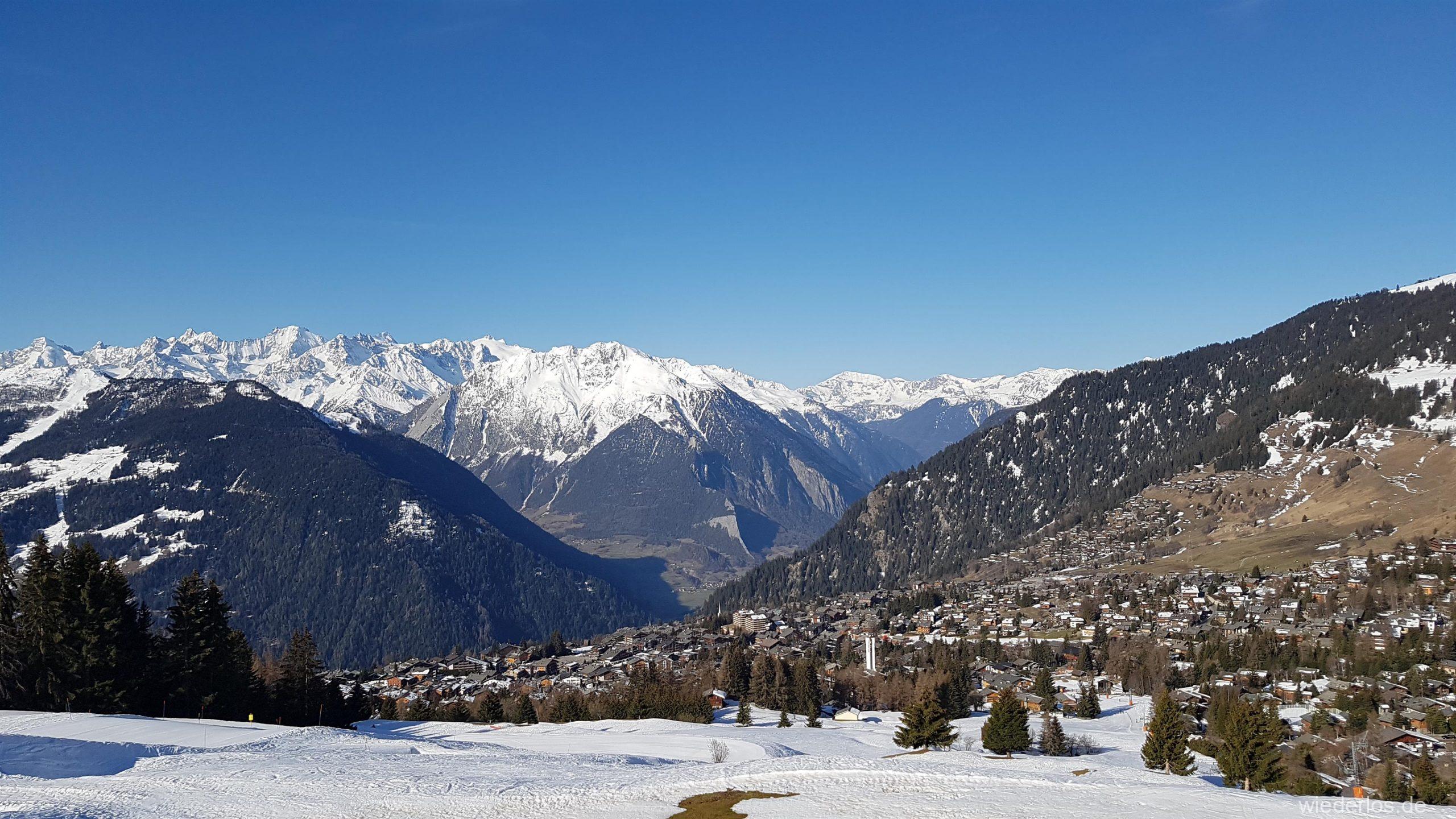 VERBIER liegt in der Schweiz. 4 VALLÉES ergänzt das Skigebiet, so dass es theoretisch bis 3330 m hoch geht, aber nur für sehr gute Skifahrer. Schnee liegt bis Ende April, so dass hier zu Ostern immer Liftbetrieb ist.